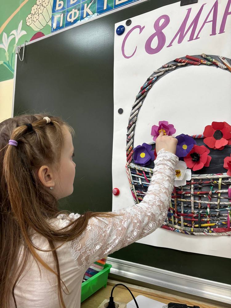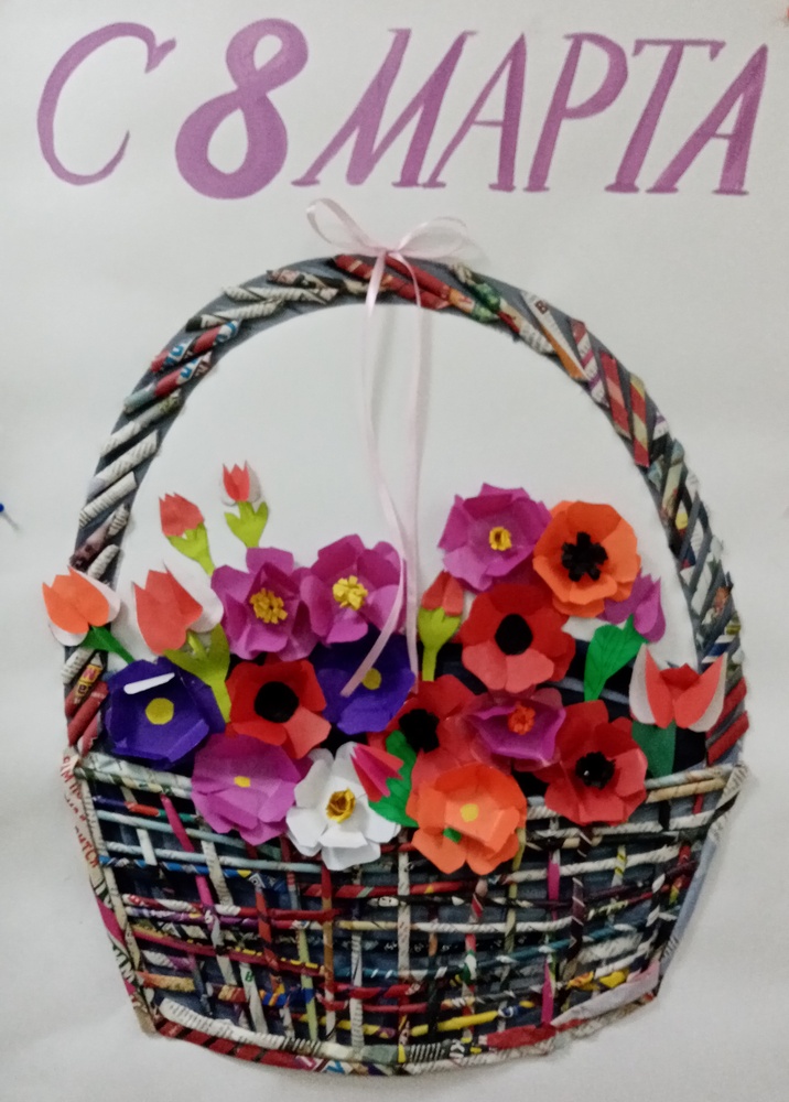 Творчески отметили 8 Марта с обучающимися Центра. Коллективно обучающиеся из разных творческих объединений создали корзину с цветами - сплели из трубочек саму корзину и сделали цветы из бумаги - вот такая красота получилась!