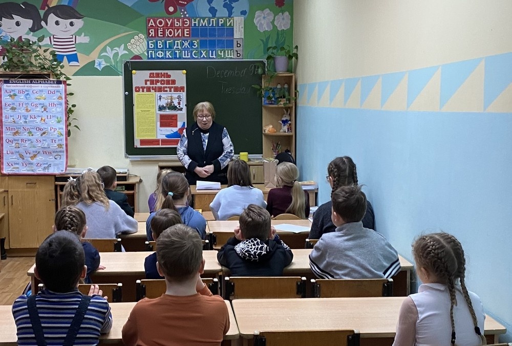 Александр Сергеевич познакомил ребят с историей знаменательного события. Дети узнали о том, что во все времена наш народ защищал свою землю, об известных героях России, о том, какие подвиги они совершили. Также школьники узнали о бессмертных подвигах воинов, удостоенных высших званий и наград: А. Суворове, М. Кутузове, Ф. Ушакове и многих других героях, выполнивших свой долг перед Родиной.