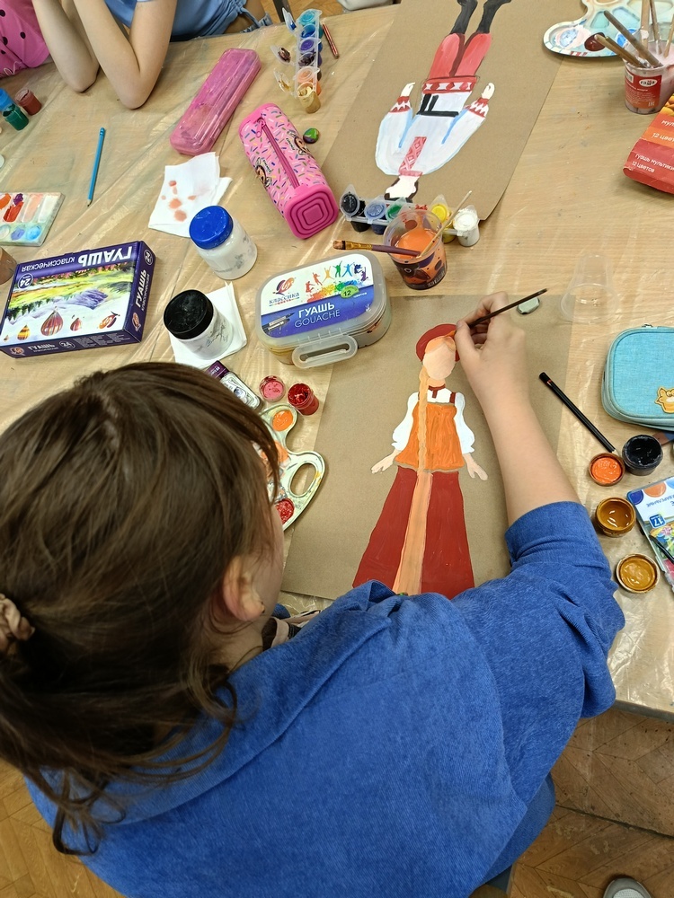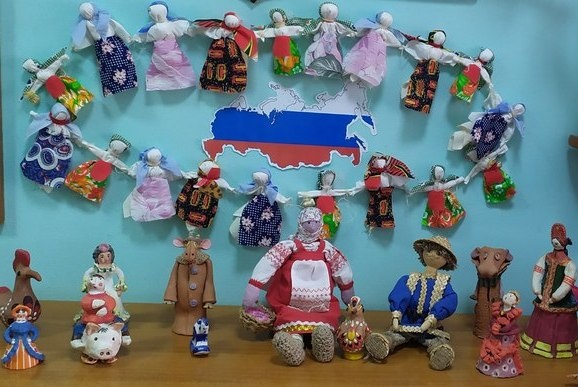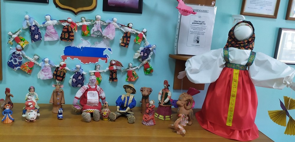 Обучающиеся художественной направленности на занятиях изготовили «Национальную игрушку народов России» (тряпичную куклу), нарисовали костюмы народов России, изготовили поделки из глины по теме «Народные промыслы», а также расписали птичек в национальном стиле.
