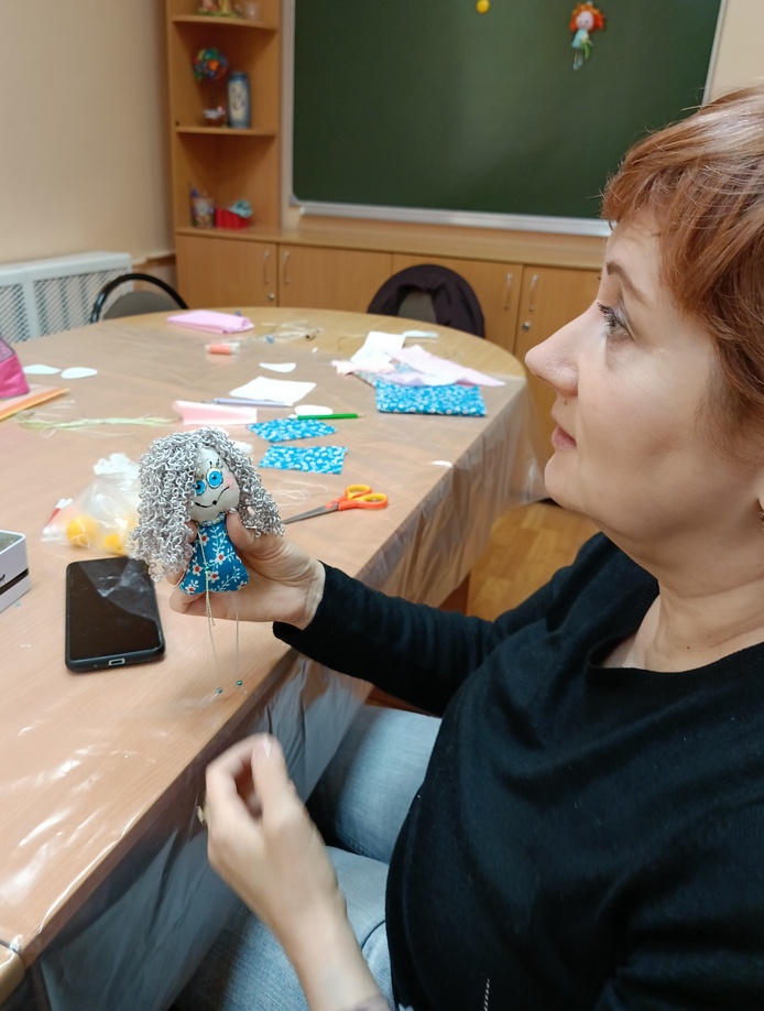 На мастер-классе коллегам была предложена работа, которая отвечала всем вышеизложенным требованиям. Педагоги перенимали опыт изготовления текстильной куклы примитива с элементами росписи. Познакомившись с простейшими способами создания изделий, во второй части мастер-класса, каждый участник мероприятия самостоятельно придумал, сшил и нарисовал «лицо» своего персонажа, поэтому куклы получились разными по характеру и настроению.