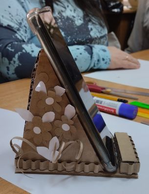 В рамках артмастерской участники познакомились с приемами и способами обработки бумаги и картона. В ходе блиц-разминки изготовили аксессуары для новогоднего оформления интерьера. При проведении «мозгового штурма» участники разработали эскизы новогодних сувениров. Во время практикума выполнили авторские открытки в технике «кардмейкинг» и новогодний подарок в технике «свитдизайн».